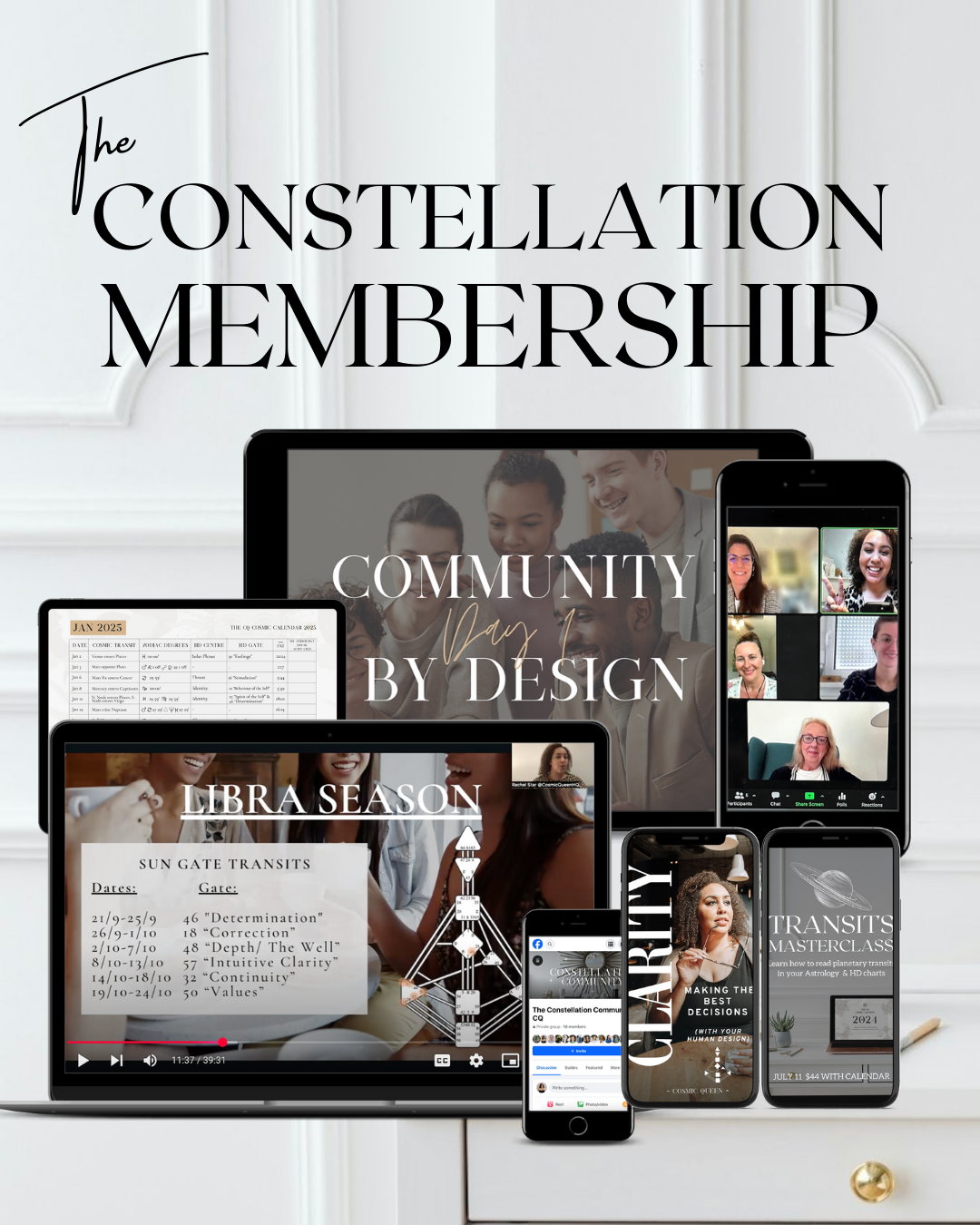 At Cosmic Queen, we offer courses, personalised mentorship & a world-class business program using Astrology and Human Design insight that help you align your life and career quickly.